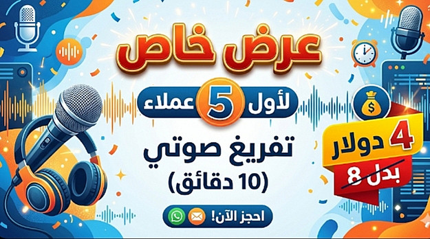 تفريغ صوتي بدقه عاليه والتسليم في نفس اليوم عرض لي اول 3 عملاء ال 10 دقائق بي 4دولار بدلا من 8 دولار