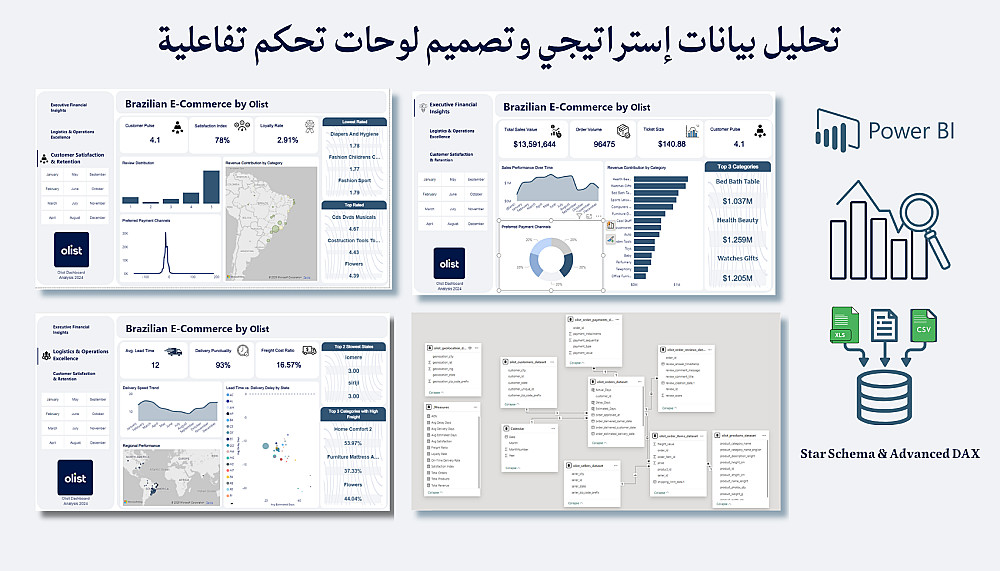 تحليل متقدم (DAX): حساب مؤشرات الأداء (KPIs) الصعبة مثل (Loyalty Rate, Satisfaction Index, Retention).