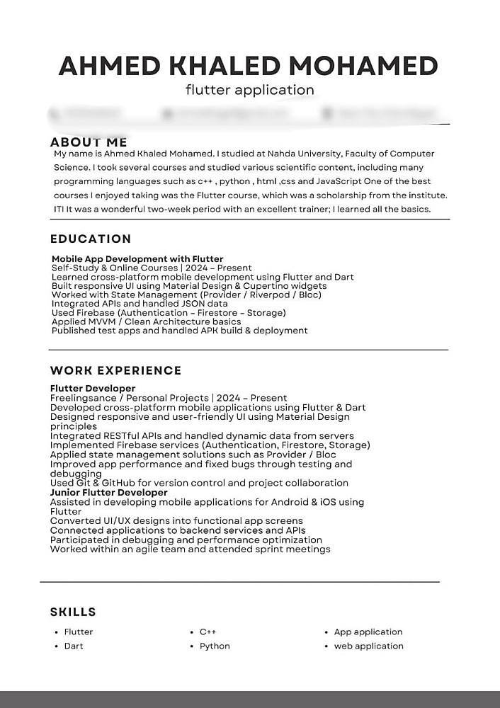 أقدم لك خدمة تصميم وكتابة سيرة ذاتية (CV) احترافية وفق المعايير العالمية وبشكل متوافق مع أنظمة ATS التي تستخدمها الشركات لتصفية المتقدمين للوظائف.