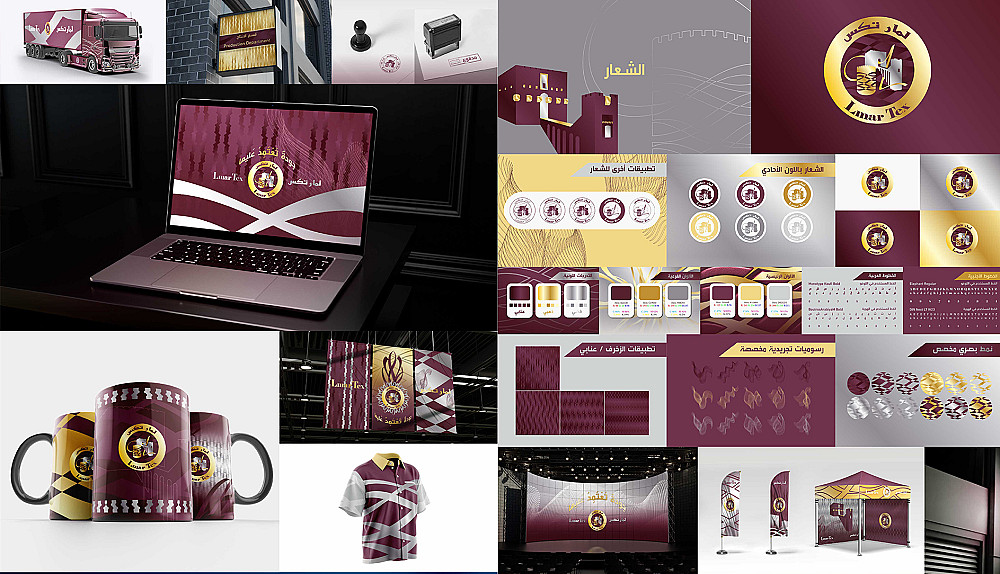تصميم هوية بصرية متكاملة تتضمن بشكل اساسي (الشعار، الخطوط، الالوان، الانماط البصرية الزخرفية) كنظام بصري متكامل،