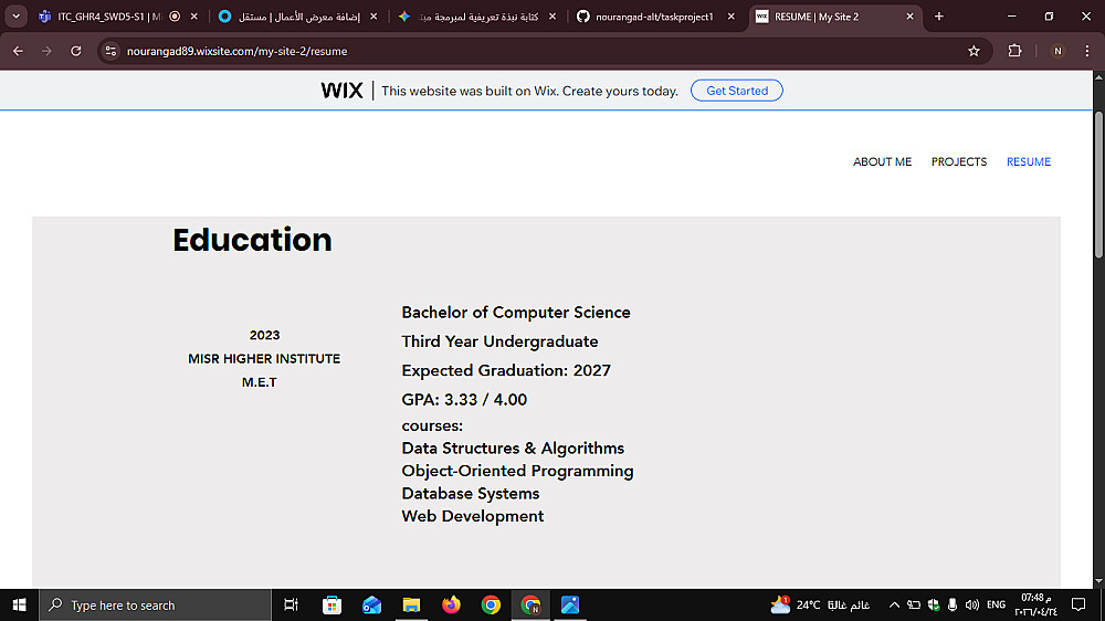 تصميم 3 صفحات أساسية: (الرئيسية، نبذة عنك، معرض أعمالك أو صفحة التواصل).