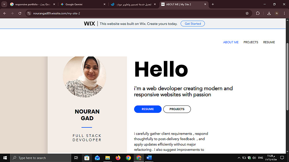 هل تبحث عن واجهة رقمية تعكس احترافيتك وتجذب عملائك؟ سأقوم ببناء موقع شخصي (Portfolio) متكامل يعبر عن هويتك المهنية بأسلوب عصري وتفاعلي.