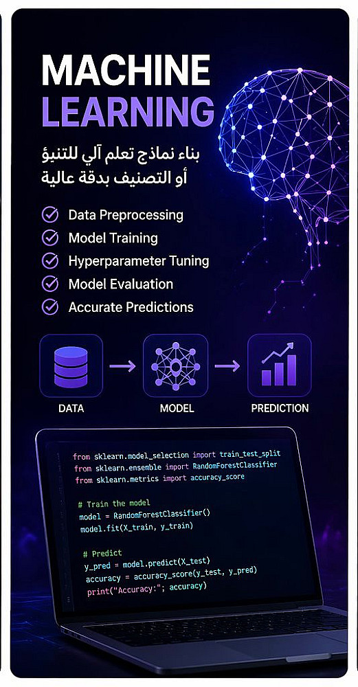 لو عندك بيانات وعايز تعمل Prediction أو Classification، أنا هبني لك موديل ML مناسب ويوصل لنتائج قوية.