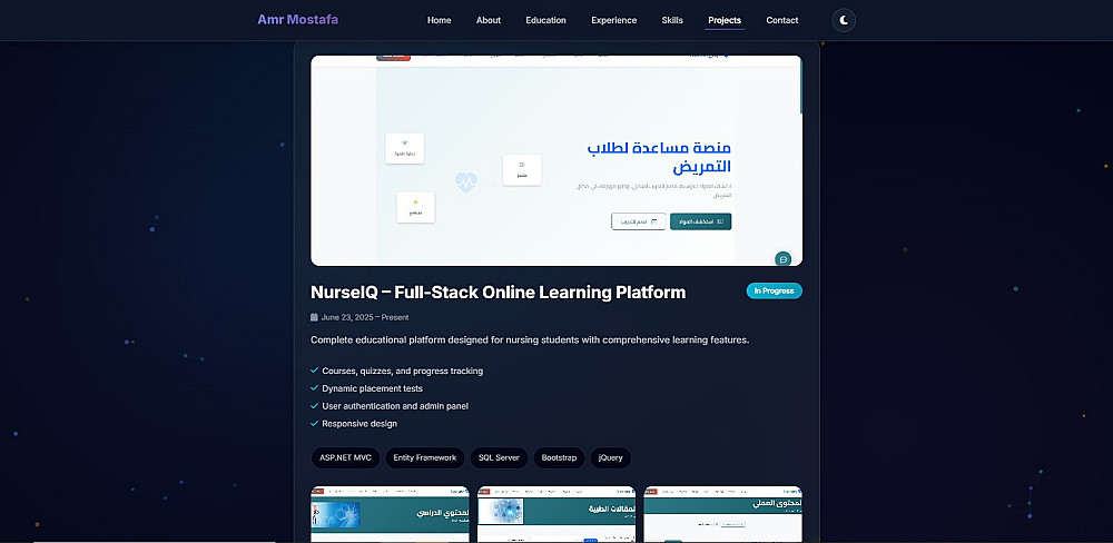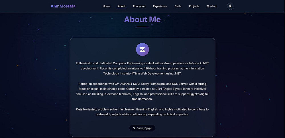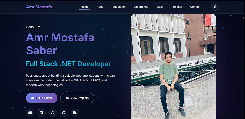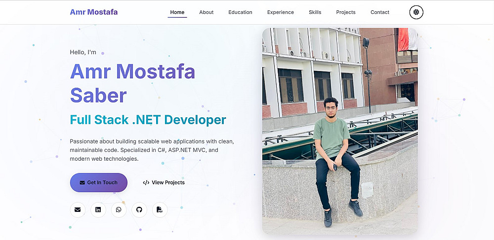 معك عمرو، مطور Full Stack dot NET متخصص في بناء مواقع بورتفوليو احترافية بأسلوب نظيف وحديث,