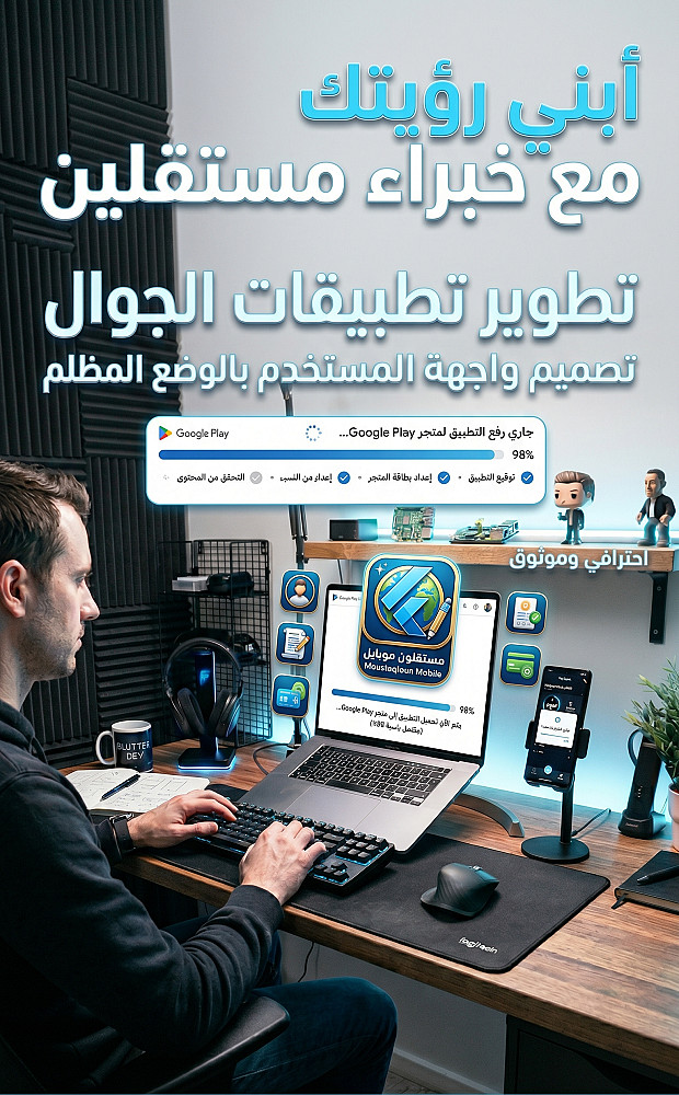 أنا مطور Flutter بخبرة في رفع التطبيقات على متجر Google Play، وسأساعدك في نشر تطبيقك بشكل احترافي وسريع.