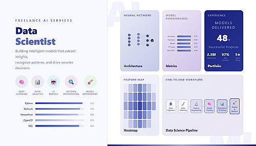تشمل الخدمة مقابل 5 دولارات بناء نموذج بسيط يعمل على بيانات تصل حتى 5000 صف، مع تسليم النموذج ونتائجه بالإضافة إلى ملخص مبسط يوضح الأداء وأهم المؤشرات.