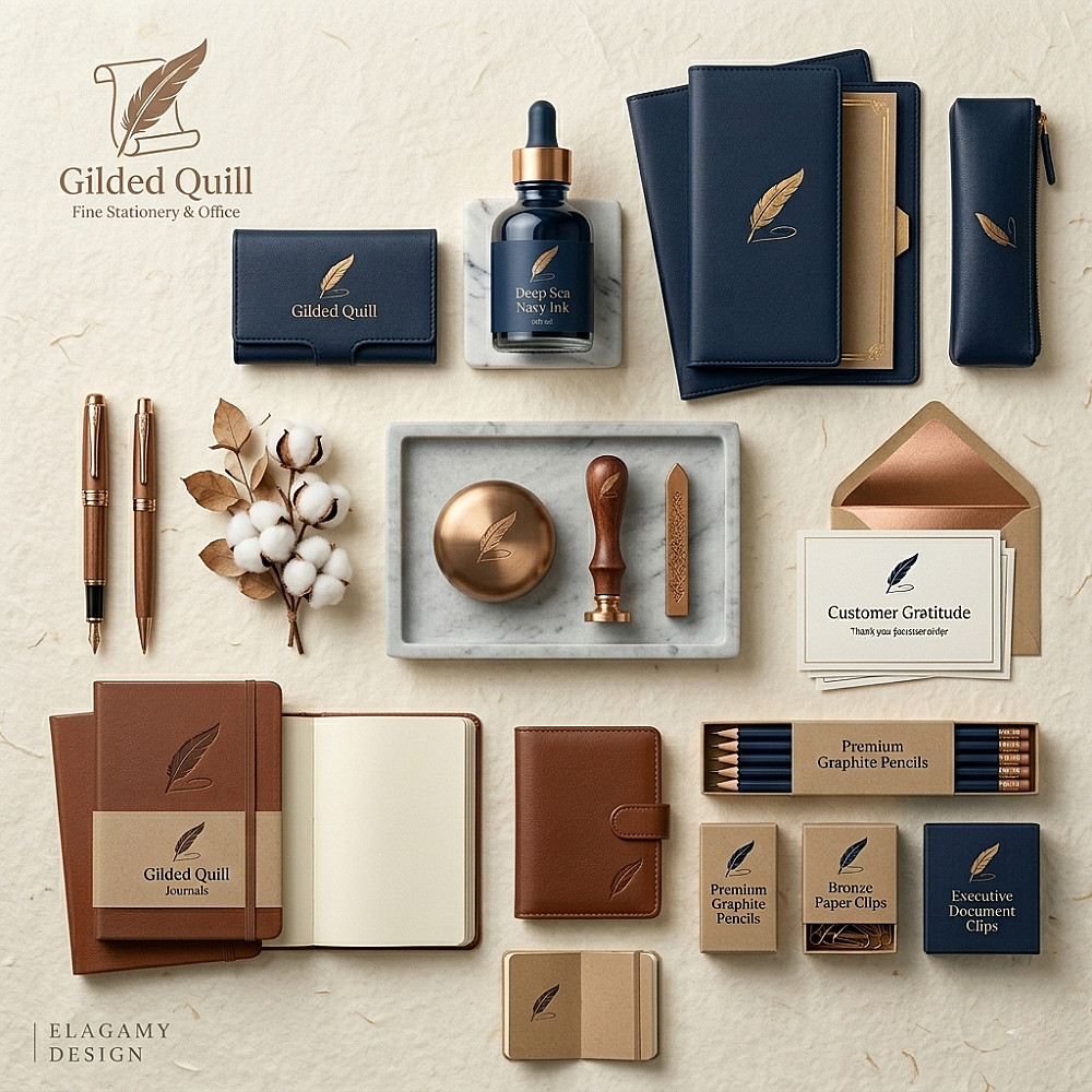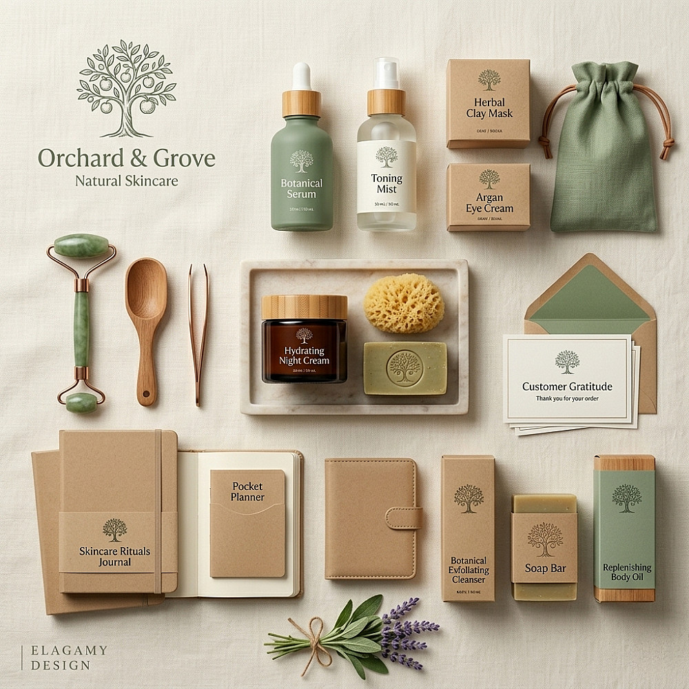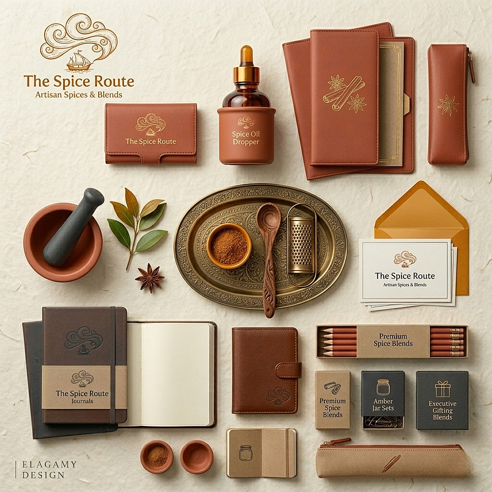 تصميم هوية بصرية وتجارية متكاملة مع عرض احترافي للمنتجات (Mockup).