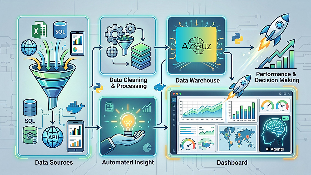 بصفتي مهندس بيانات (Data & Analytics Engineer)، سأقوم ببناء "عقل رقمي" لعملك، يحول البيانات المبعثرة إلى رؤى استراتيجية تعمل آلياً بالكامل. لن تحتاج بعد الآن لإدخال البيانات يدوياً أو القلق بشأن دقة التقارير.