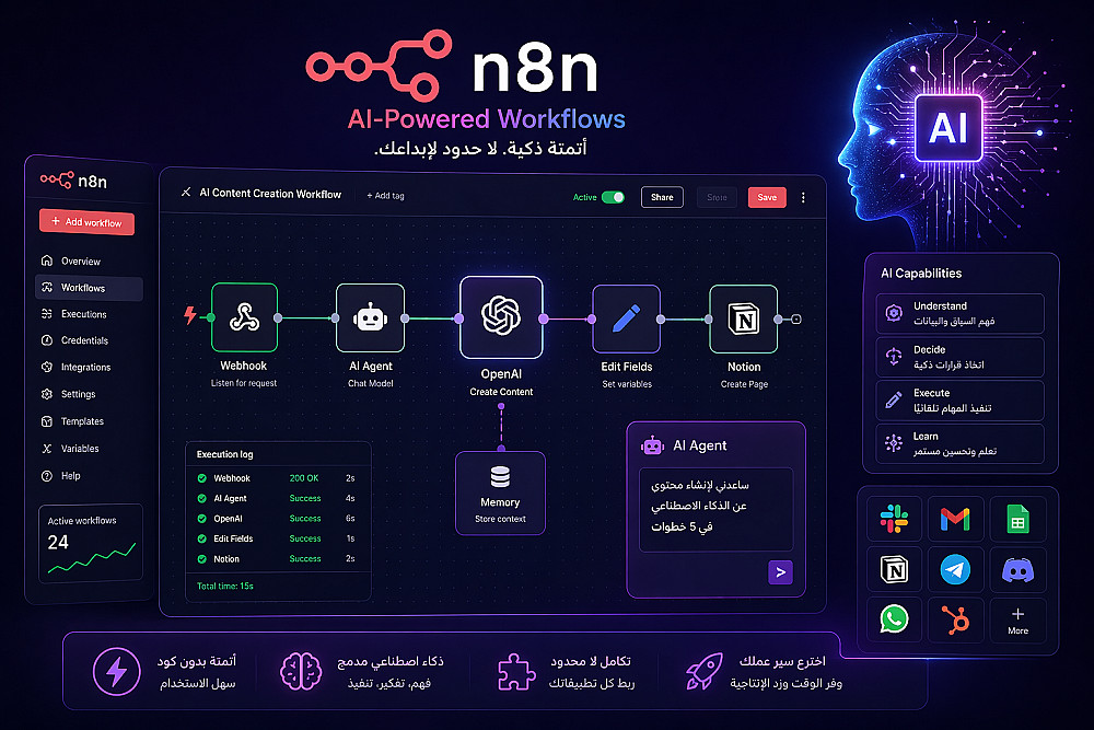 أنا هبني لك نظام أوتوماتيكي باستخدام n8n يقوم بـ: