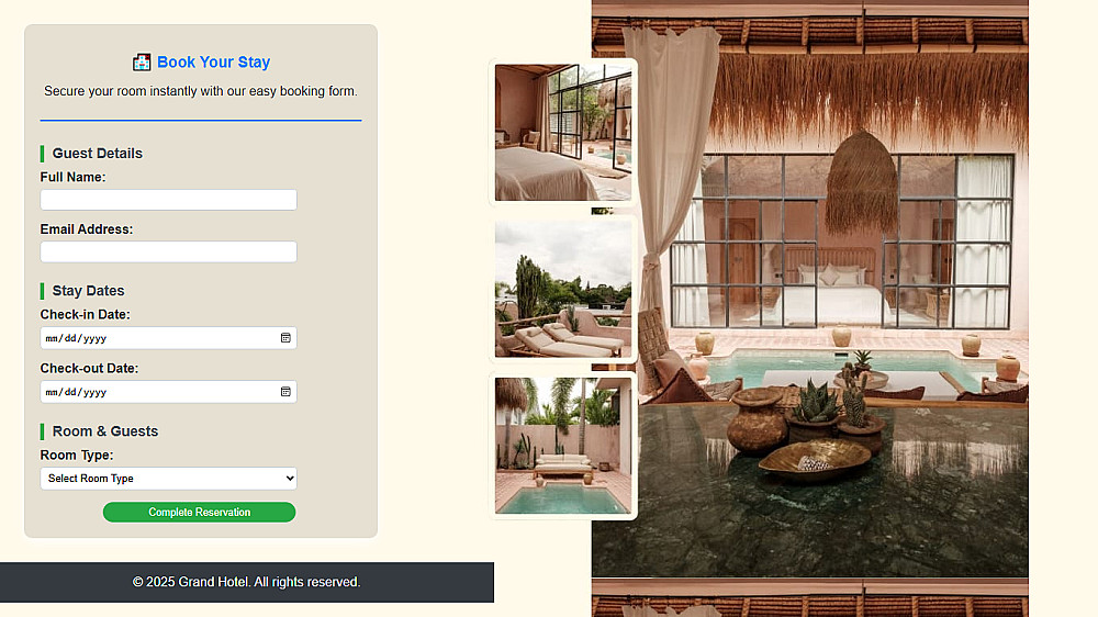 إنشاء موقع فندق متكامل مع نظام حجز غرف