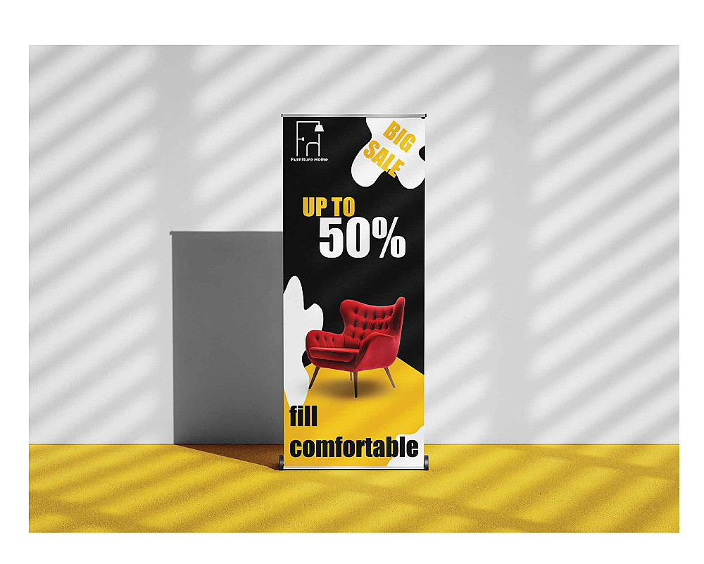 رول آب (Roll-up): للمعارض والمؤتمرات.