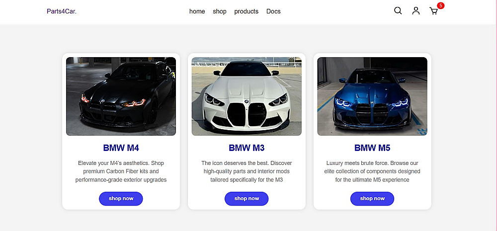 متجر إلكتروني متخصص في عرض وبيع إكسسوارات سيارات BMW، تم تصميمه بعناية ليجمع بين الشكل العصري وسهولة الاستخدام.