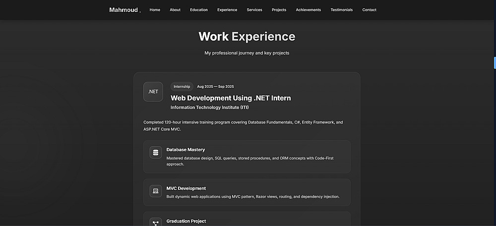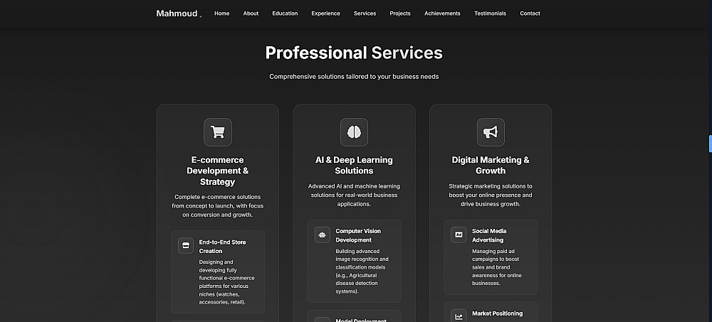 أحرص على تقديم تصميم يعبّر عنك بشكل حقيقي ويناسب مجالك، مع كود نظيف وموقع سريع التحميل ومتجاوب مع جميع الأجهزة والشاشات، والتزام تام بالمواعيد المتفق عليها.