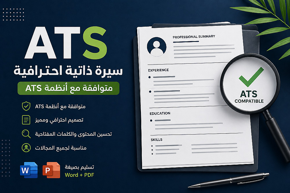 أقدم لك خدمة تصميم وكتابة CV احترافي متوافق مع أنظمة ATS ، مع تحسين المحتوى ليظهر بشكل قوي وواضح أمام الـ HR.