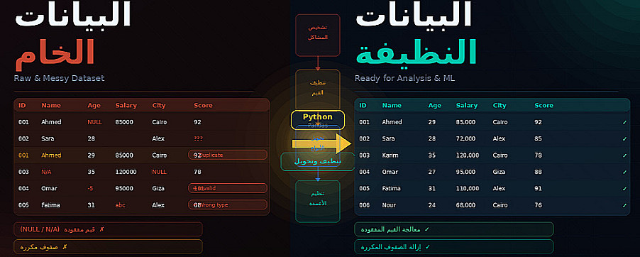 تنظيف البيانات هو أهم خطوة في أي مشروع تحليل بيانات أو تعلم آلة. في هذه الخدمة سأقوم بتنظيف Dataset الخاص بك والتأكد من أن البيانات جاهزة للتحليل أو لبناء نماذج تعلم الآلة.