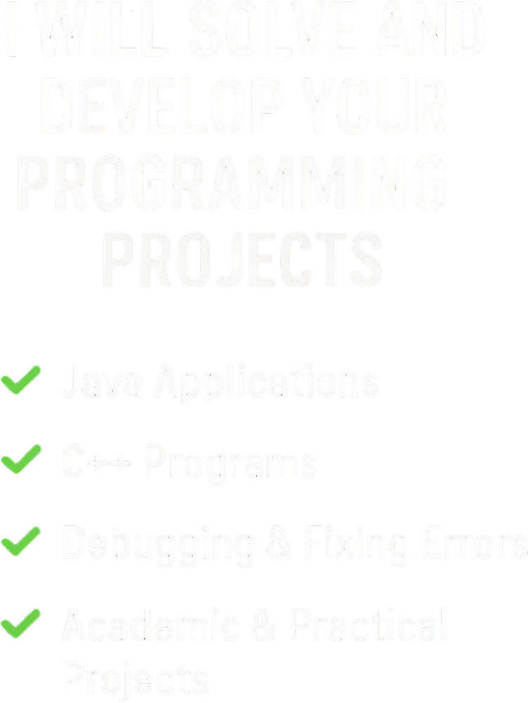 حل وتطوير مشاريع Java و C++ باحتراف تنفيذ برامج وتطبيقات حسب طلب العميل تصحيح الأخطاء (Debugging) وتحسين الكود كتابة كود