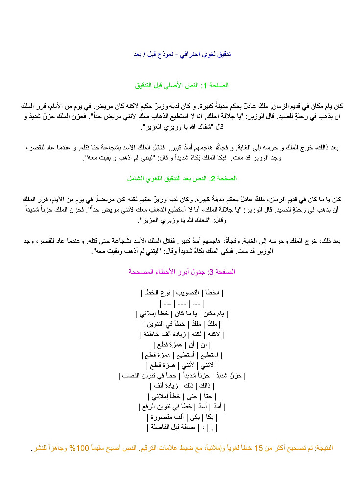 1. تصحيح جميع الأخطاء الإملائية والنحوية والصرفية.