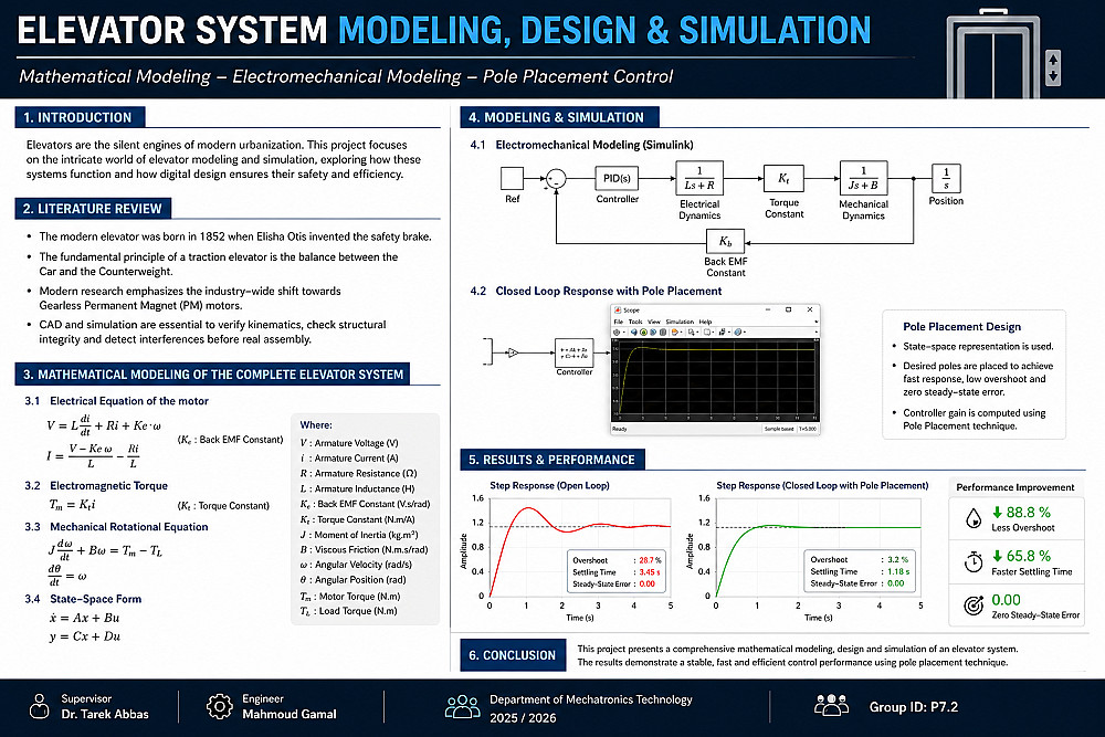 التقنيات: MATLAB، Simulink، أنظمة التحكم، State Space، النمذجة الميكانيكية والكهربائية