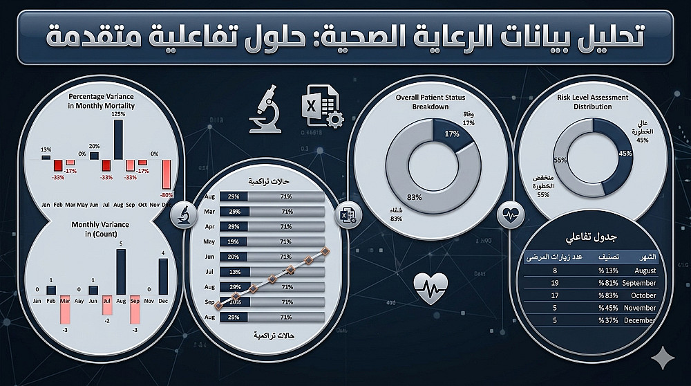 بناء لوحة تحكم تفاعلية توضح نسب الشفاء والوفاة وتوزيع الحالات زمنياً