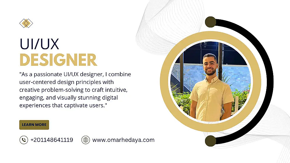 "كمصمم واجهات وتجربة مستخدم، أجمع بين مبادئ التصميم المتمحور حول المستخدم والحلول المبتكرة؛ لابتكار تجارب رقمية سلسة، وتفاعلية، وجذابة بصرياً تأسر انتباه المستخدمين وتلبي أهداف مشروعك."