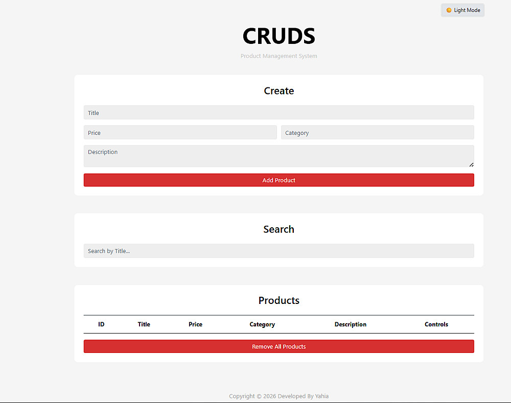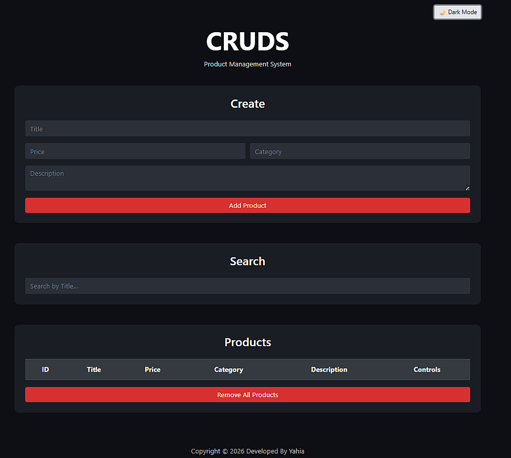 نظام CRUD كامل عبارة عن صفحة واحدة تفاعلية يشمل: