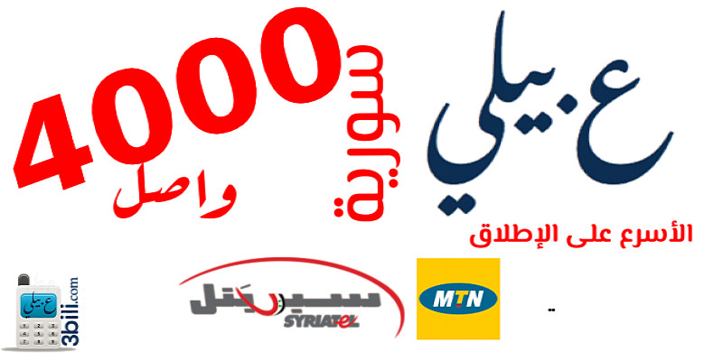 مسبق الدفع => 4000 ليرة سورية (سواء كان ام تي ان او سيريتل)