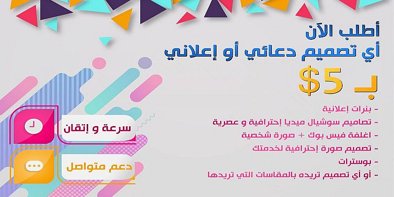 اطلب الآن اي تصميم تريده فقط بـ5$ لكل تصميم