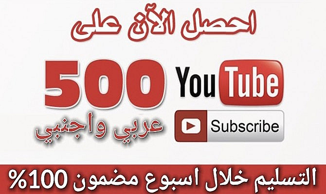 سوف اقوم باضافة 500 مشترك لقناتك علي اليوتيوب مع ضمان لمدة اسبوع متوافقين مع التحديثات الأخيره لليوتيوب وادسنس ويمكن تحقيق شرط تفعيل القناة بهم -- مميزات الخدمه -- ✪ البدء في الزيادة الفورية بعد طلب الخدمة ✪ المشتركين متفاعلين اجانب و عرب ✪ الخدمة أمنه جدا على القناة وعلي حساب أدسنس وغير مخالف لشروط اليوتيوب ✪ أحتاج رابط القناة فقط و لا أحتاج لأى معلومات أخرى -- ملاحظات هامة -- ✘ يتم احتساب عدد المشتركين التي سيتم اضافتهم ابتداء من العدد عند بدء العمل ✘ رجاءاً عدم طلب عمليه اخرى من شخص آخر قبل انتهاء هذه العمليه ✘ لايمكن الغاء الطلب او تعديله بعد البدء في تنفيذه والا سيعتبر الطلب تم تنفيذه ✘ اذا تم عمل الفيديو في وضع غير ظاهر للعامة او اذا تم حذفة بأي شكل سيعتبر الطلب تم تنفيذه