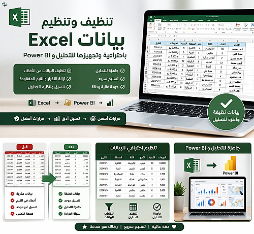 تنظيف وتنظيم بيانات Excel باحترافية وتجهيزها للتحليل وPower BI