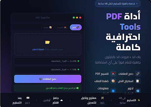 سأبني لك أداة PDF Tools Pro كاملة — باك اند + فرونت اند بالبايثون