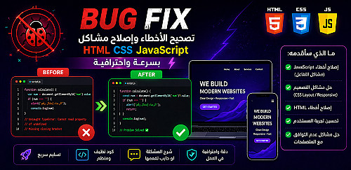 تصحيح الأخطاء وإصلاح مشاكل مواقع HTML CSS JavaScript بسرعة واحترافية ...