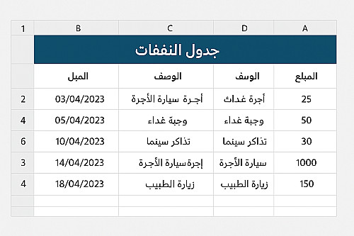 تصميم وتنسيق ملف Excel لإدارة النفقات اليومية