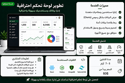 تطوير لوحة تحكم احترافية لإدارة البيانات والمستخدمين