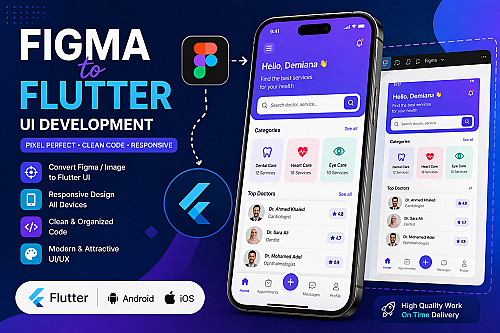 تحويل تصميم Figma أو صورة إلى Flutter UI احترافي ومتجاوب