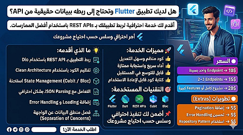 سأقوم بربط تطبيق Flutter بـ REST API باستخدام Dio و Cubit / Bloc