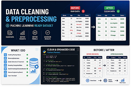 سأقوم بتنظيف ومعالجة بياناتك باحتراف باستخدام Python Pandas وتجهيزها ل ...
