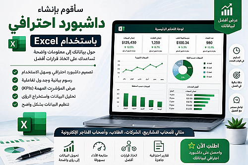 سأقوم بإنشاء Dashboard احترافي باستخدام Excel لعرض بياناتك بشكل واضح