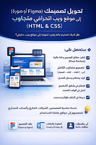 تحويل تصميمك (Figma أو صورة) إلى موقع ويب احترافي متجاوب (HTML & CSS)