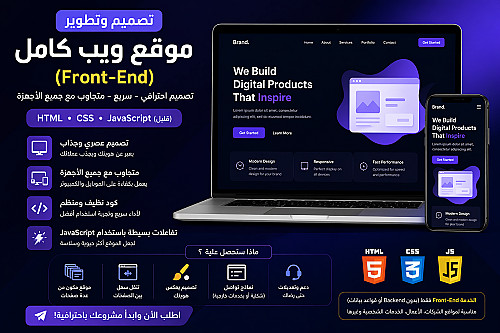 تصميم موقع ويب كامل (Front-End) باستخدام HTML, CSS, Bootstrap