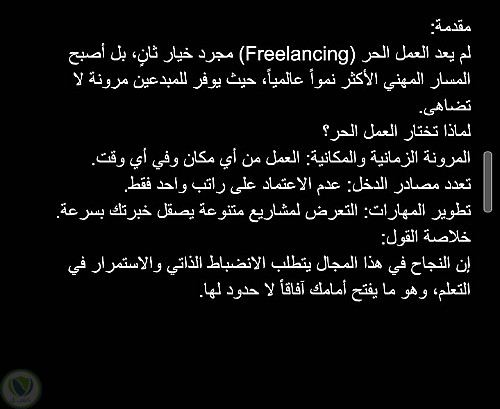 كتابة مقالات، ترجمة نصوص، تدقيق لغوي).