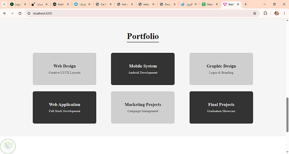 إنشاء معرض أعمال (Portfolio) منظم لتصنيف المشاريع حسب مجالات التخصص (تطبيقات الويب، تطبيقات الجوال، التصميم الجرافيكي).