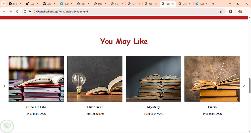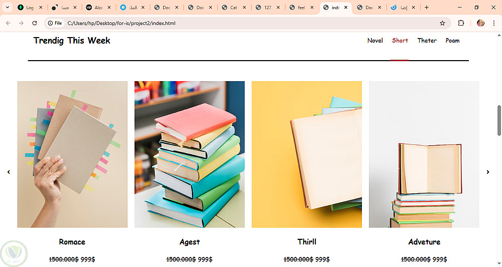 إنشاء واجهات عرض جذابة ومنظمة للمنتجات مصنفة حسب اللغة (العربية، الإنجليزية، التركية) والنوع (رواية، تاريخ، خيال).