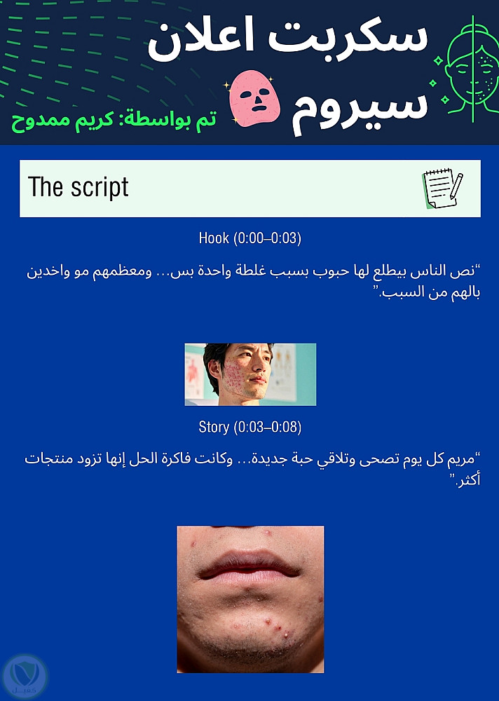 المدّة المطلوبة مناسبة لـ Reels و TikTok، يعني سكربت مختصر ومباشر، ومع نهاية واضحة فيها CTA