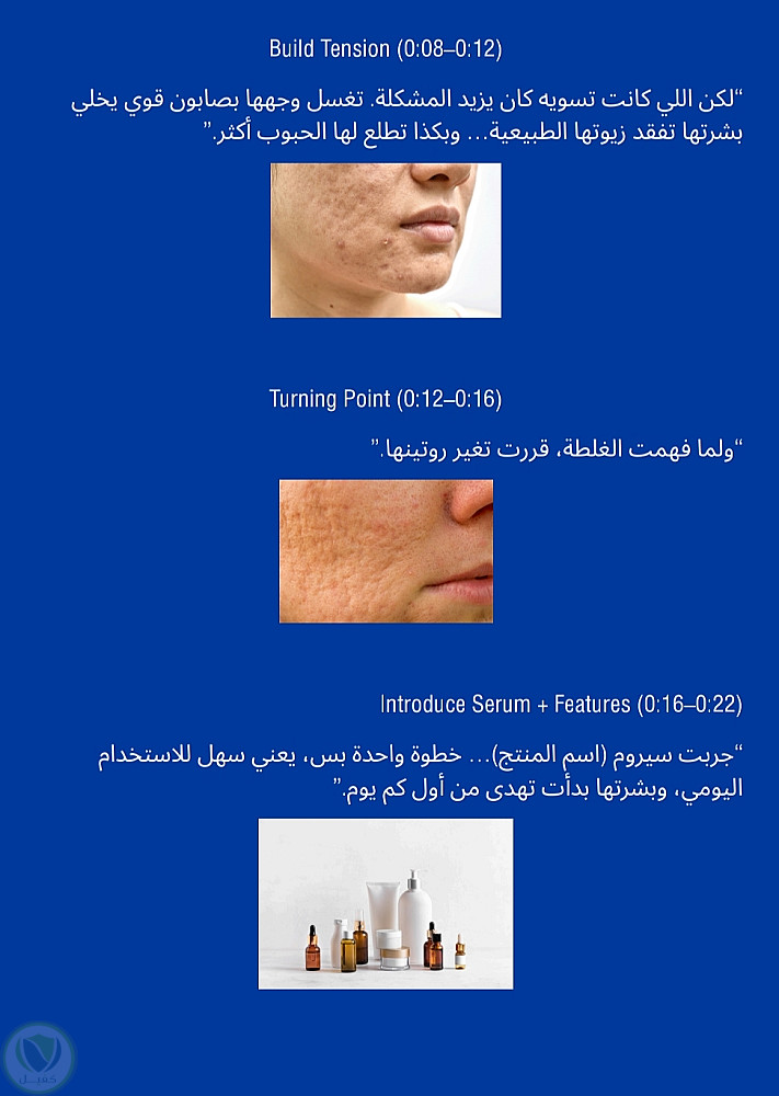 فيديو تعريفي بسيط عن منتج عناية بالبشرة (سيروم يومي)، يكون storytelling خفيف وفيه hook واضح من أول ثواني.