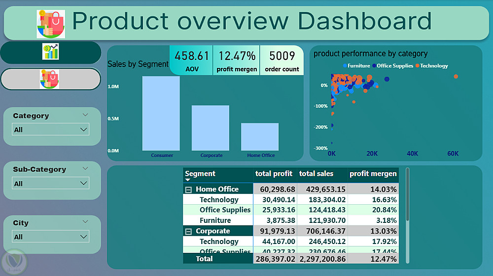 -مخططات دائرية وشريطية وعمودية لعرض أداء المنتجات والمبيعات