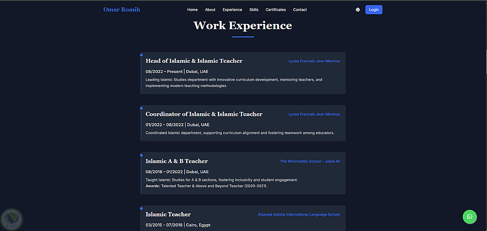 طوّرت موقعًا متكاملًا لمعلم لغة إنجليزية يقدّم دورات تعليمية وخدمات تدريبية، وتم تصميم الموقع ليعكس شخصية المدرّس المهنية ويبرز خبرته الأكاديمية.