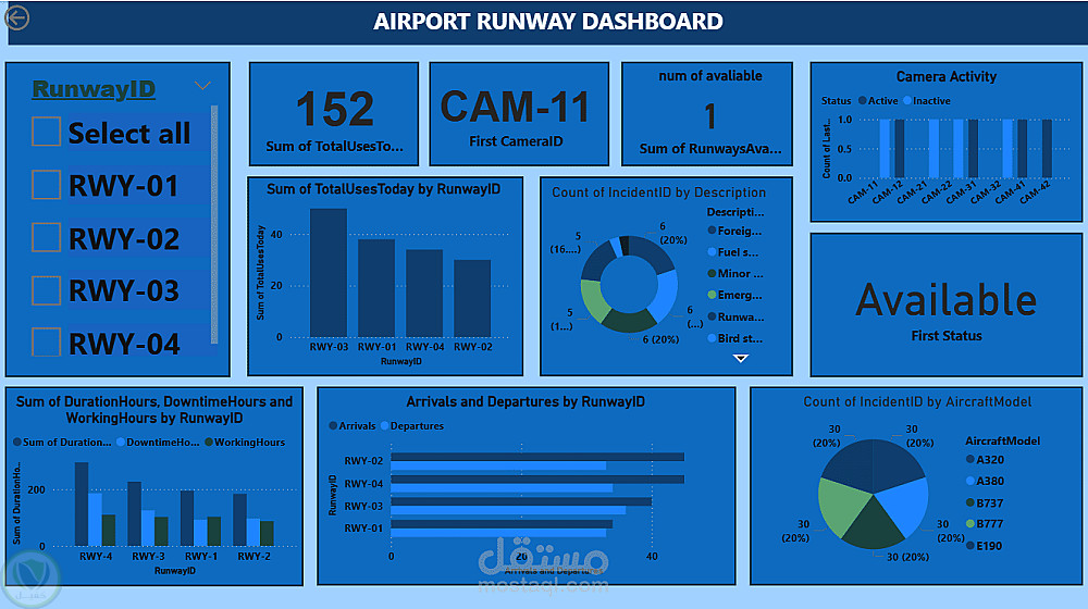 المشروع عبارة عن تحليل بيانات بإستخدام Power BI للممرات الجوية الموجوده فى المطار و الهدف منه هو فهم الية الحركه على الممرات و دراسة مواضع الضغط و تمركزها فى اي جهه من المطار للمساعدة فى اتخاذ القرارات التشغيليه و زيادة نسبة الامان و هو العنصر الاهم فى عالم الطيران