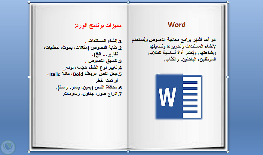 بعض الصور من العرض التقديمى لكتاب الكترونى يشرح خلاله ميكروسوفت أوفس .