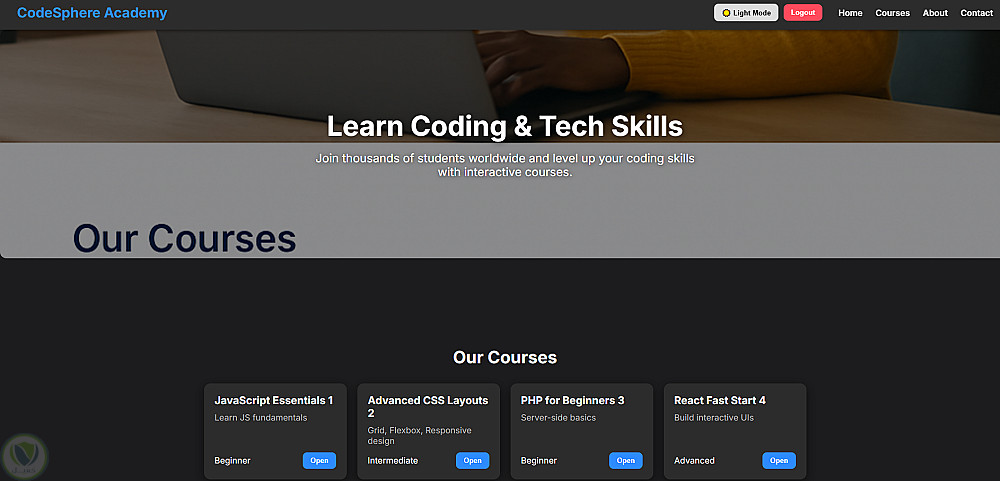 CodeSphere Academy – منصة تعليمية تفاعلية لتعلم مهارات البرمجة والتطوير.