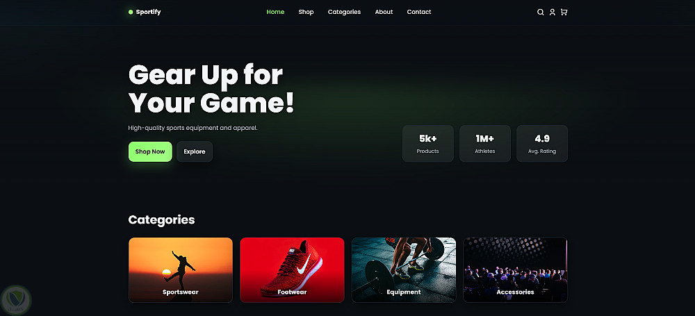موقع واجهة لمتجر رياضي بسيط أنشأته لعرض الفئات والمنتجات بشكل احترافي وجذاب. الواجهة ثابتة (Static) ومبنية باستخدام html وcss مع مجموعة صور توضيحية. التصميم يركّز على وضوح العرض وتجربة مستخدم سهلة.